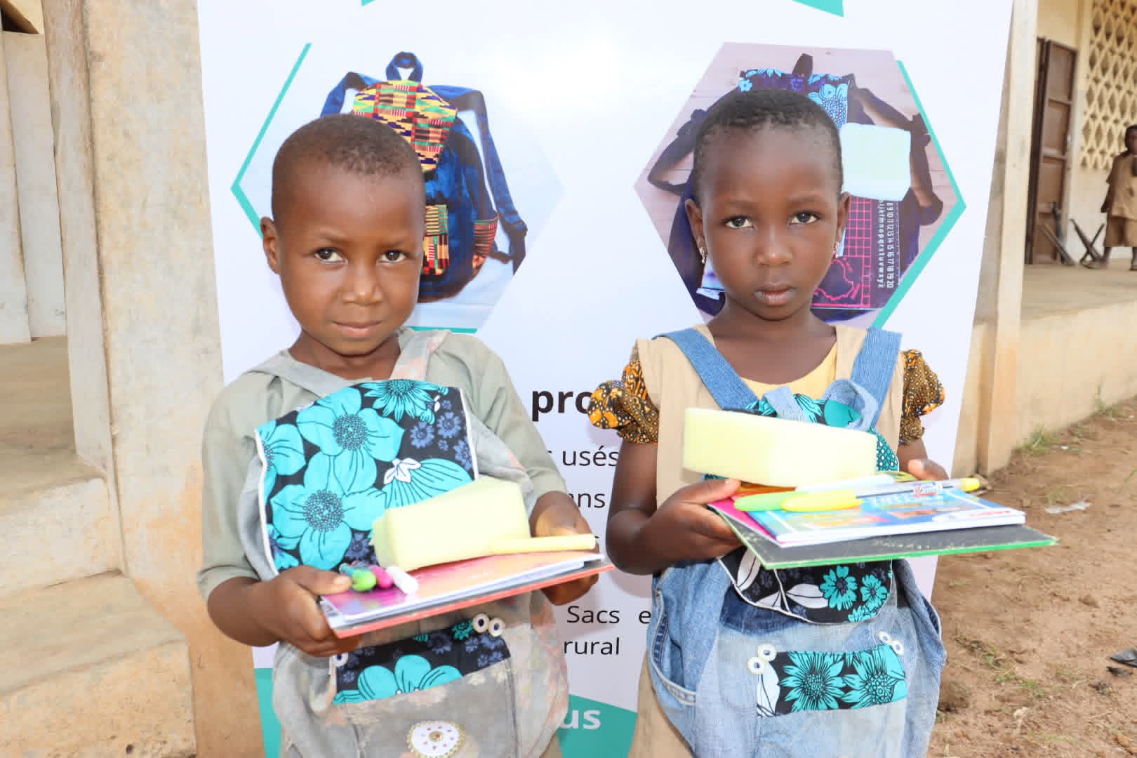 Les premières cohortes de jeunes formés, issues du quartier Okedama à Parakou, avaient mis en œuvre une activité assez particulière. Ils ont contribué à la transformation des jeans usés en sacs d’écoliers écologiques. Au début de cette année scolaire 2025-2026, ces sacs écologiques, en plus des kits scolaires (cahiers, ardoises, stylos, craies, chiffons) ont été distribués aux 50 enfants commençant leur première année du primaire (CI) à l’Ecole Primaire Publique de Karo dans le village Karo au Nord Bénin. Ces sacs et kits scolaires permettront à ces enfants de bien commencer leur année scolaire. Par cette donation, les parents aux revenus modestes pourront faire des économies sur les dépenses scolaires et éventuellement investir ces économies dans leurs activités génératrices de revenu. A travers cette action, le programme de formation des jeunes sur le volontariat est passé de la protection de l’environnement (recyclage des jeans) à la protection sociale (distribution de kits scolaires). Comme le confirment de nombreuses études scientifiques, la protection sociale est indispensable à toute nation, surtout celles à faible revenu comme le Bénin.