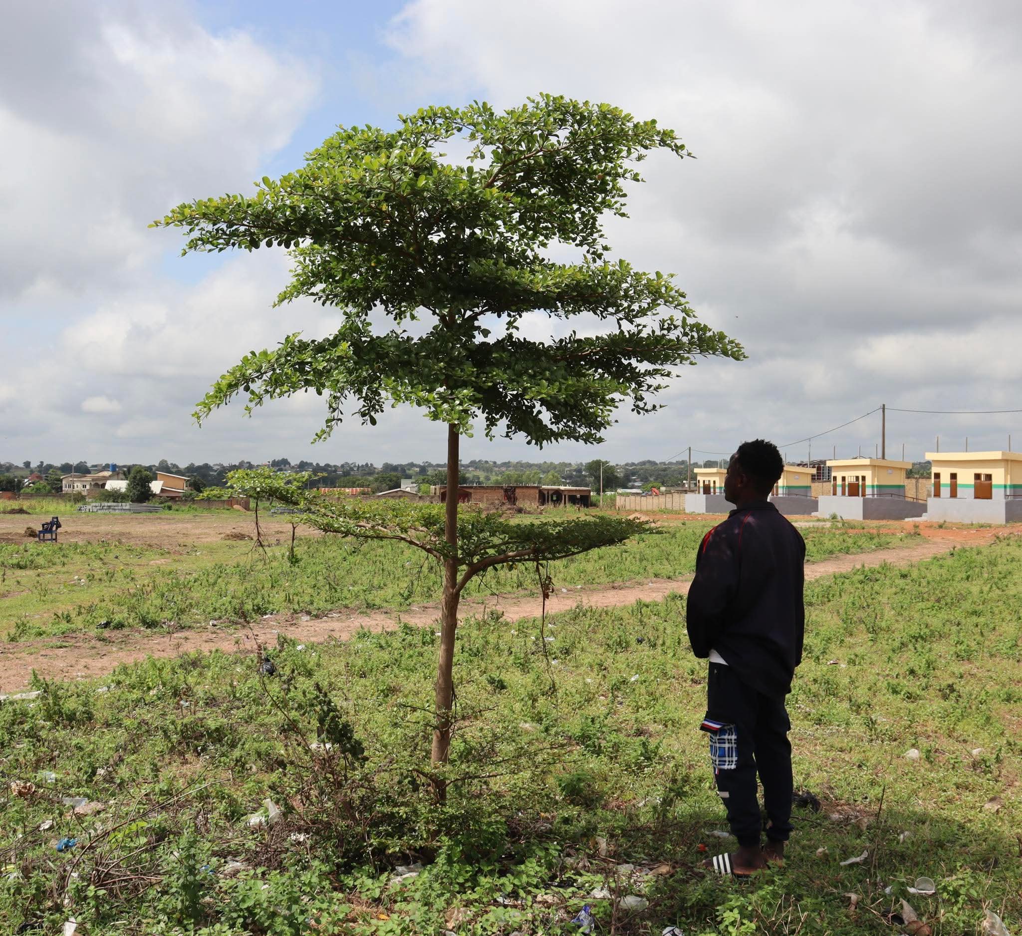 Il a planté cet arbre qui n’avait que la taille d’une brindille de balai. Trois années plus tard, l’arbre le dépasse complètement en taille. C’est le constat fait lors de la visite de terrain organisée pour évaluer l’état des arbres plantés par les jeunes volontaires au CEG OKEDAMA.