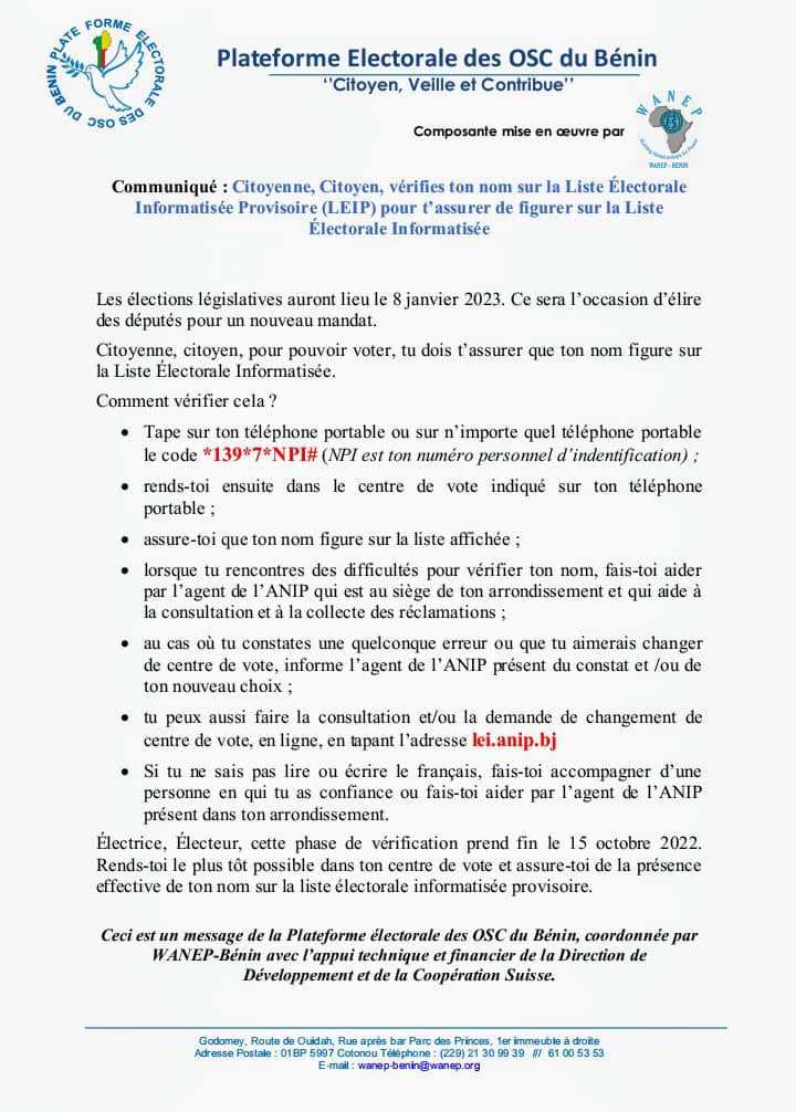 Le Message De La » Plateforme Des OSC » Aux Électeurs